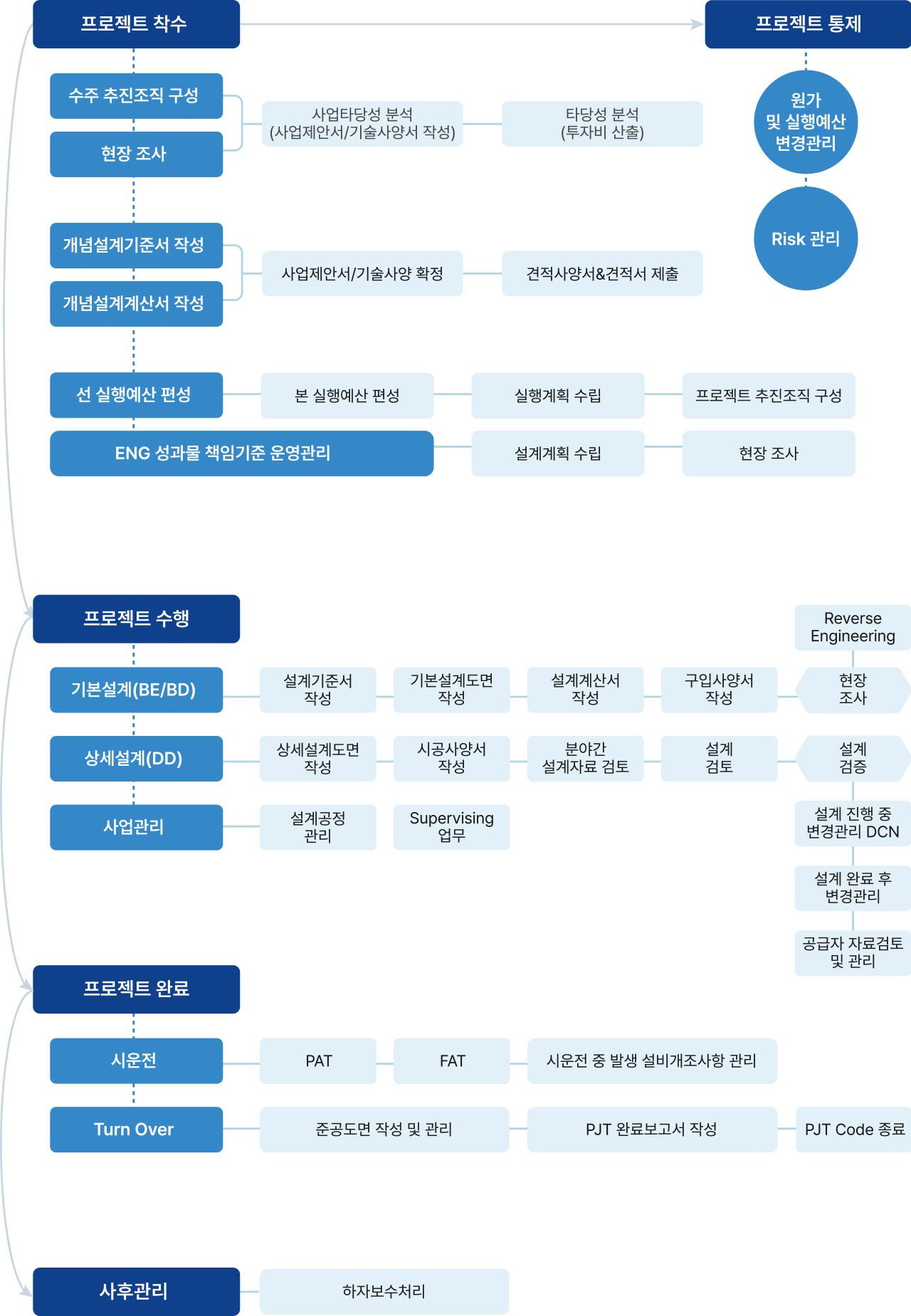 엔지니어링 사업은 평균 20년 이상 근무한 전문 기술인으로 조직된 HK 솔루션은 전문적이고 효율적인 설계를 제공합니다.